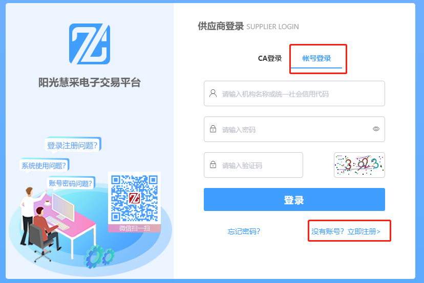 点击【账号登陆】——【没有账号?立即注册】,进入账号注册页面。